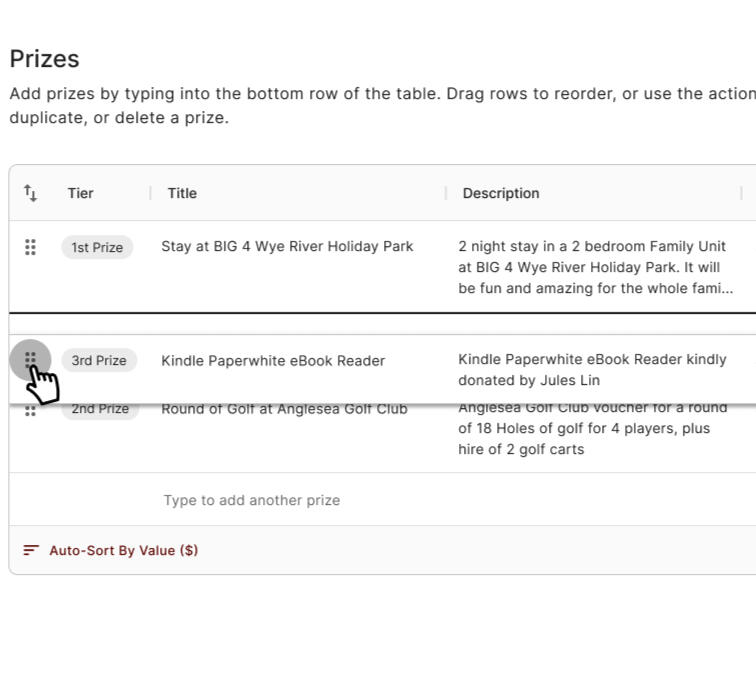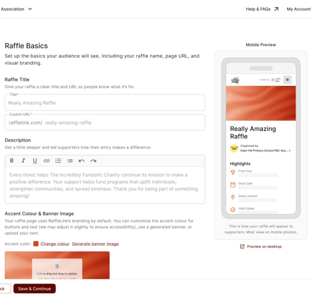 Organisations and user accounts now live centrally, so you can manage past and present raffles without starting from scratch each time.