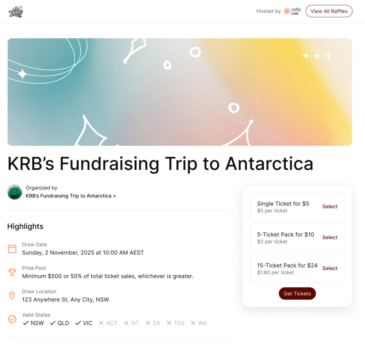 A refreshed raffle page designed to build trust and drive ticket sales.